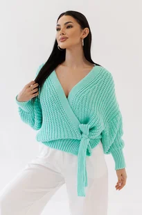Wyjątkowy, mięsisty sweterek, wiązany na kokardę na boku. Szyku dodaje regulowany za pomocą paska, głęboki dekolt w kształcie litery V. Dodatkowym atutem są szerokie rękawy wykończone ściągaczem. Świetnie spr ...