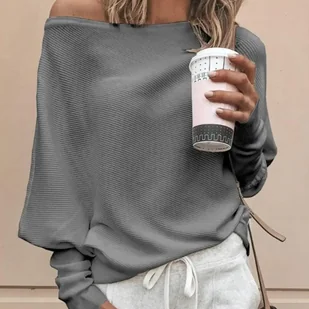 Sweter damski z dekoltem w łódkę ze ściągaczami - Szary