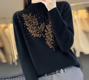 CECHY PRODUKTU: Klasyczny sweterek Ozdobne cekiny Długi rękaw Półgolf Ściągacze na rękawach Prosty krój