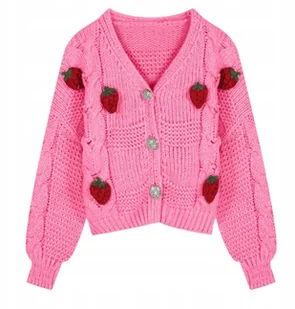 Sweter Kardigan z Guzikami Różowy