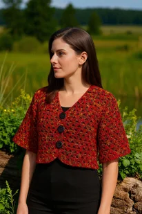 Ten piękny sweterek to ręcznie robiona narzutka na szydełku o wyjątkowym charakterze vintage. Wykonany został z kolorowej włóczki w energetycznych barwach czerwieni, żółci i szarości, które tworzą niepowtarzal ...