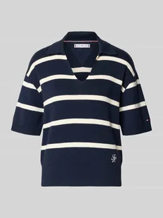 Sweter damski Tommy Hilfiger;Efekt: Wzór na całej powierzchni;Krój: Krój regular fit;Wzór: w paski;Aplikacja: Wyhaftowane logo;Kształt kołnierza: