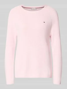 Sweter damski Tommy Hilfiger;Efekt: jednolity kolor;Krój: Krój regular fit ;Aplikacja: Wyhaftowane logo;Kształt kołnierza: Bez dekoltu;Dekolt: