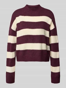 Sweter damski Vero Moda;Model ‘Nez’;Efekt: Wzór na całej powierzchni;Krój: Krój regular fit;Wzór: w paski;Detale: obniżone ramiona;Kształt kołnierza: