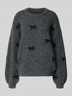 Sweter z dzianiny damski Only;Model ‘Brunhilda Life’;Efekt: jednolity kolor;Krój: Krój relaxed fit;Wzór: graficzny;Aplikacja: Wyhaftowane logo;Detale: