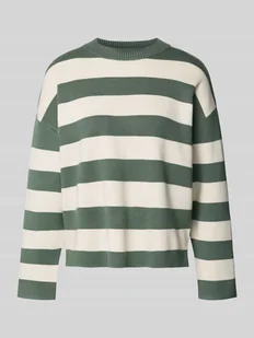 Sweter damski z dzianiny Vero Moda;Model ‘Silje’;Efekt: jednolity kolor, wzór na całej powierzchni;Krój: Pudełkowy krój;Wzór: w paski;Kształt kołnierza: Bez dekoltu;Rękaw: