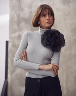 Przedstawiamy nasz jasnoszary, prążkowany sweter z golfem — uosobienie dyskretnej elegancji i wygody. Ten model wykonany jest z luksusowej ribbowanej dzianiny wiskozowej, bardzo miłej w dotyku oraz dla ciała. Jasnoszary odcień tego modelu doda twojej szafie ponadczasowego charakteru i stworzy milion możliwości na kapsułowe stylizacje. Niezależnie od tego, czy ubierasz się na swobodne wyjście, czy na bardziej formalne spotkanie, ten sweter będzie zawsze pasował, dzięki swojej prostocie i wyrafinowaniu. Delikatny ribb doda tekstury i atrakcyjności twoim stylizacjom.