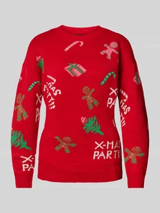 Sweter świąteczny o kroju comfort fit ze wzorem całej powierzchni model ‘XMASPARTY’