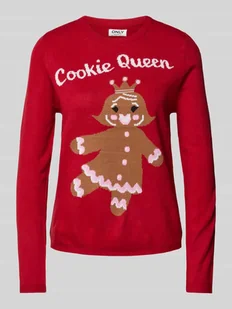 Sweter świąteczny o kroju regular fit z motywem pierniczków model ‘XMAS GINGERBREAD’