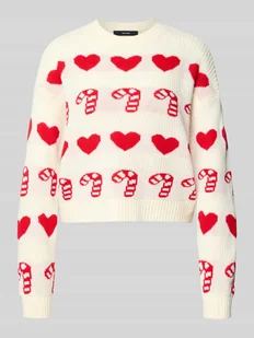 Sweter świąteczny damski Vero Moda;Model ‘Candyhearts’;Efekt: Wzór na całej powierzchni;Krój: Krój regular fit;Wzór: Wzór bożonarodzeniowy;Kształt kołnierza: Bez dekoltu;Dekolt:
