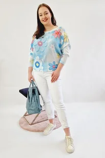 Jego cechy charakterystyczne to rękaw za łokieć, który dodaje swetrowi wyjątkowego uroku i nadaje mu delikatności, oraz okrągły dekolt, który podkreśla delikatną strukturę swetra. Nie można pominąć również wyjątkowego wzoru w kwiatki, który nadaje mu niepowtarzalnej lekkości, idealnie pasując do różnych stylizacji, zarówno na co dzień, jak i od święta. Ten cienki sweterek damski doskonale komponuje się ze stylowymi białymi spodniami, tworząc lekki, wiosenny look, który przyciąga spojrzenia i dodaje pewności siebie. Niezależnie od okazji, ten sweterek w kwiaty jest idealnym wyborem dla kobiet, które cenią sobie nie tylko wygodę, styl i oryginalność, ale także wysoką jakość wykonania i unikalność każdego detalu. Gotowa na wyjątkowy dodatek do swojej garderoby? Dodaj do koszyka już teraz! ---------------- Wymiary: