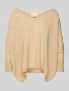 Sweter z dzianiny damski KUJTEN;Czysty kaszmir;Oversized;Model ‘MINIE’;Prążkowane wykończenia;Dekolt w serek;Rękaw 3/4;Długość tyłu w rozmiarze 1: 56 cm;Długość rękawa w rozmiarze 1: 18 cm