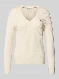 Sweter z dzianiny damski Tommy Hilfiger;Efekt: jednolity kolor;Krój: Krój regular fit;Wzór: Ścieg warkoczowy;Aplikacja: Wyhaftowane logo;Dekolt: