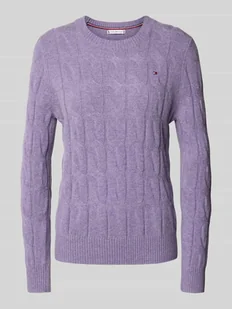 Sweter z dzianiny damski Tommy Hilfiger;Efekt: Melanż;Krój: Krój regular fit;Wzór: Ścieg warkoczowy;Aplikacja: Wyhaftowane logo;Dekolt: