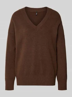 Sweter z dzianiny damski Only;Model ‘Mari’;Efekt: Melanż;Krój: Krój regular fit ;Dekolt: Dekolt w serek;Rękaw: długi;Zakończenia rękawów: prążkowane;Wykończenie: prążkowane;Wykończenie materiału: Dzianina