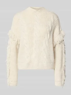 Sweter z dzianiny damski Only;Model ‘Holly’;Efekt: jednolity kolor;Krój: Krój regular fit ;Wzór: Ścieg warkoczowy;Aplikacja: Frędzle;Kształt kołnierza: Bez dekoltu;Rękaw: długi;Wykończenie materiału: Dzianina