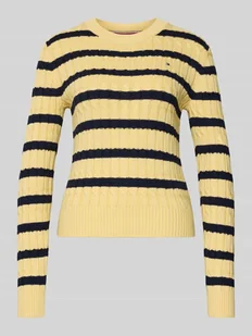 Sweter z dzianiny damski Tommy Hilfiger;Efekt: jednolity kolor, dwa kolory;Krój: Krój slim fit;Wzór: w paski;Aplikacja: Detal z logo;Kształt kołnierza: