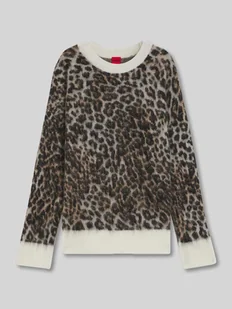 Sweter z dzianiny damski HUGO;Model ‘Seratu’;Efekt: Wzór na całej powierzchni;Krój: Krój loose fit;Wzór: Zwierzęcy nadruk;Kształt kołnierza: Bez dekoltu;Rękaw:
