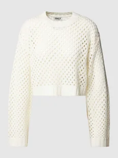 Sweter z dzianiny damski ONLY;Luźny fason;Jednolity kolor;Model ‘SMILLA’;Prążkowane wykończenia;Okrągły dekolt;Perforowanie;Długość tyłu w rozmiarze S: 42 cm;Długość rękawa w rozmiarze S: 57 cm