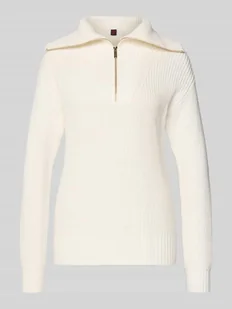 Sweter z dzianiny damski Stefanel;Czysta bawełna;Krój regular fit;Golf;Zamek błyskawiczny;Długość tyłu w rozmiarze S: 63 cm;Długość rękawa w rozmiarze S: 56 cm