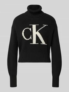 Sweter z dzianiny damski Calvin Klein Jeans;Czysta bawełna;Prosty krój;Golf;Nadruk z logo;Długość tyłu w rozmiarze S: 51 cm;Długość rękawa w rozmiarze S: 63 cm