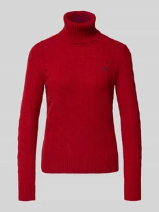 Sweter z dzianiny damski Polo Ralph Lauren;Mieszanka materiałów z dodatkiem bawełny;Krój slim fit;Golf;Wyhaftowane logo;Prążkowane wykończenia;Długość tyłu w rozmiarze S: 57 cm;Długość rękawa w rozmiarze S: 65 cm