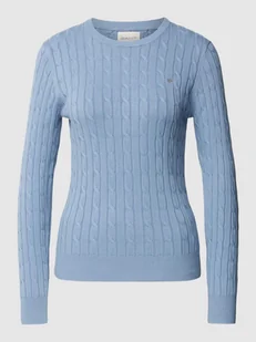 Sweter z dzianiny damski GANT;Mieszanka bawełny z dodatkiem streczu;Dopasowany krój;Jednolity kolor;Okrągły dekolt;Ścieg warkoczowy;Wyhaftowane logo;Długość tyłu w rozmiarze S: 59 cm;Długość rękawa w rozmiarze S: 64 cm