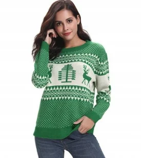 HIT ZIMY . Na aukcji prezentowany jest uroczy, ŚWIĄTECZNY sweter damski z motywem RENIFERÓW i CHOINKI. . Model: SW-9 Informacje o produkcie Nasz świąteczny s...