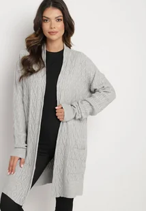 Szary Długi Nierozpinany Kardigan z Tłoczeniem Vaithnia