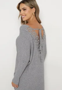 Szary Sweter z Wiskozą i Modalem oraz Ozdobnym Wiązaniem Zinnisca