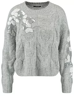 Taifun Damski sweter z cekinami, zdobiony długim rękawem, sweter z długim rękawem, okrągły dekolt, sweter melanżowy, jednokolorowy, Wzór Silver Shine, 38