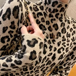 TEMU 1 szt. Elegancki sweter z dzianiny z nadrukiem w panterkę z wysokim kołnierzem dla kobiet, dzianina dżersejowa, sezon jesień/