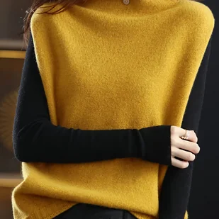 TEMU Bezrękawnik z Golfem, Gładki , Żebrowana Tekstura, Prosty Kamizelka Dojazdowa, Casual na Wiosnę i Jesień