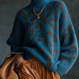 TEMU Bluzka damska w leopardzie z kolorowymi blokami - Luźny sweter z długim rękawem na zimę, idealny do stylizacji profesjonalnych i casualowych,