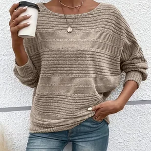 TEMU Bluzka z Rękawami Batwing dla Kobiet – Miękki, Casualowy Top z Okrągłym Dekoltem, Długie Rękawy, Jednokolorowa, Pranie w Praniu Maszynowym,