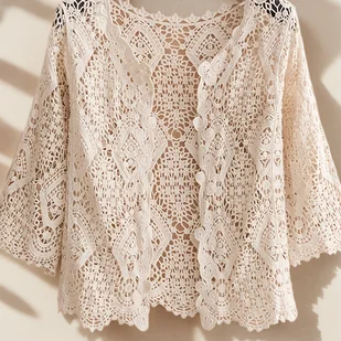 TEMU Bohemijski casualowy kardigan w etnicznym stylu z pięciopunktowymi rękawami i ażurową dekoracją