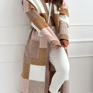 TEMU damska casualowa i elegancka kardigan z długim rękawem w stylu color-block na jesień i zimę 2025