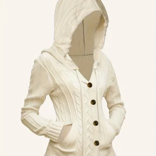 TEMU Damska, jednokolorowa, dzianinowa kardigan z kapturem