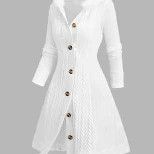 TEMU Elegancki Miękki Sweter Kardigan z Kapturem Zapinany na Guziki w Jednolitym Kolorze z Dzianiny Kablowej dla Kobiet, Kolekcja Jesień/ od