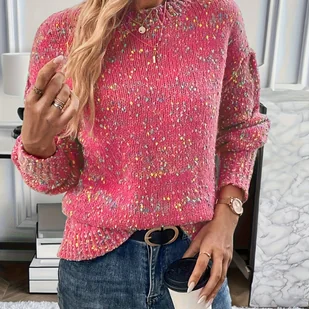 TEMU Damski Jasnoróżowy Sweter - Miękki, Elastyczny Sweter z Długim Rękawem i Okrągłym Dekoltem, Całoroczny, Casualowy i Elegancki Sweter do Noszenia