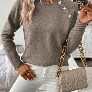 TEMU Damski Elegancki Sweter w Kolorze Miętowej Zieleni - Długie Rękawy, Okrągły Kołnierz z Guzikami na Przodzie, Średnio Elastyczny Jednokolorowy
