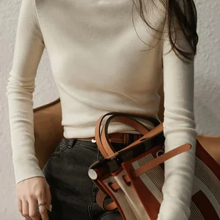 TEMU 2025 Modny Prosty Uniwersalny Podstawowy Jesień/ Luźny Jednokolorowy Elegancki Sweter z Wysokim Kołnierzem i Długim Rękawem