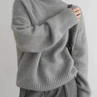 TEMU 2025 Modny Prosty Uniwersalny Podstawowy Jesień/ Luźny Jednokolorowy Elegancki Sweter z Wysokim Kołnierzem i Długim Rękawem
