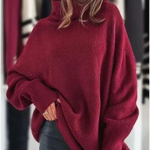TEMU Damski Gruby Sweter na Jesień i Zimę Jednokolorowy z Żebrowaną Teksturą Miękka, Elastyczna Tkanina Ciepły, Wygodny i Uniwersalny Top