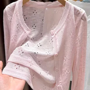 TEMU Damski kardigan na wiosnę i z długim rękawem, oddychający, casualowy Okrągły dekolt, jednolity