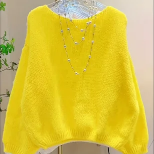 TEMU Elegancki Styl Damski Krótki Sweter, Luźny Leniwy Styl, Wiosenna/Jesienna Japońska Słodka Bluzka z Długim Rękawem
