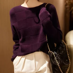 TEMU Damski Miękki Sweter - Elegancki Pulower z Okrągłym Dekoltem, Niezbędny na Każdy Sezon w Głębokim Fioletu/Czerni/Białym/Szarym/Beżu, Stylowy do