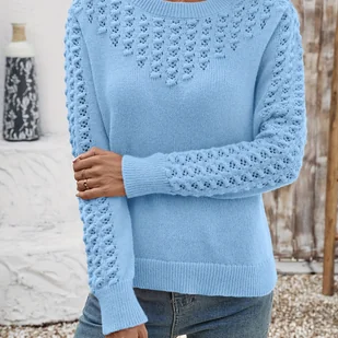 TEMU Damski Neon Różowy Półprzezroczysty Koronkowy-Sweter - Bluzka z Długim Rękawem i Okrągłym Kołnierzem, Wzorami Serc oraz Motywów Kwiatowych,