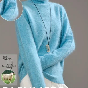 TEMU Damski Nowy Sweter z Kaszmirem na Zimę 2025 – Pluszowy Gruby Włos, Turkusowy Wysoki Kołnierz z Długim Rękawem, Płaszczowy Kołnierz, Czysty
