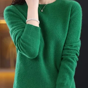 TEMU Modny Prosty Sweter z Okrągłym Dekoltem dla Kobiet, Elegancki Wszechstronny Luźny Cienki Sweter na Wiosnę i Jesień